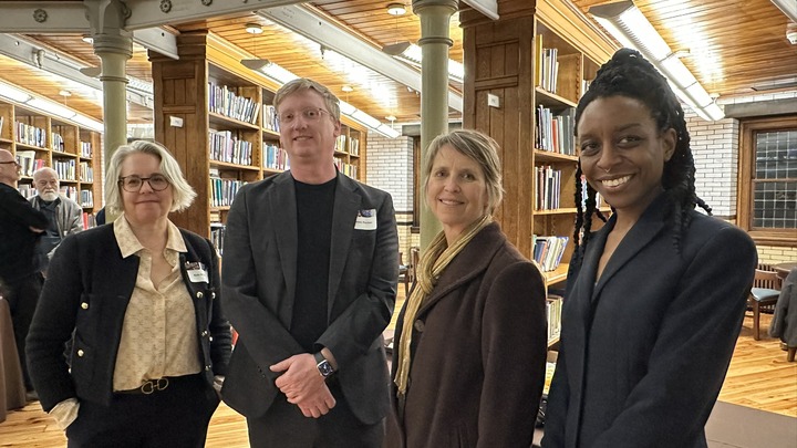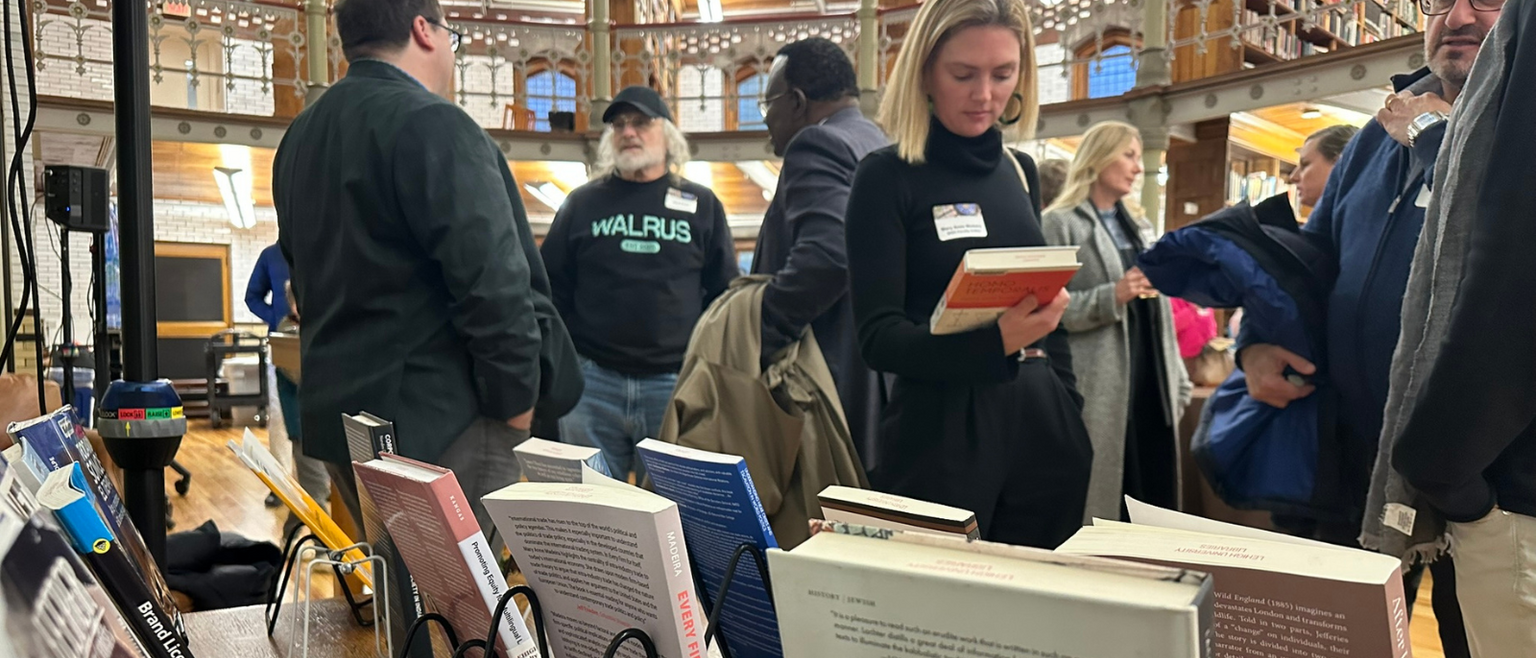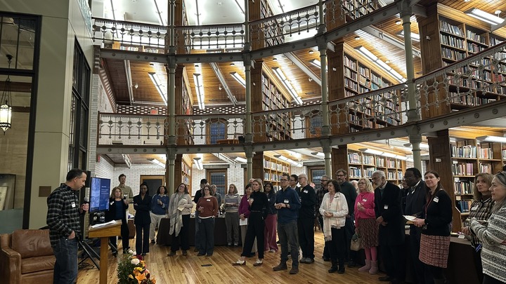 On Tuesday, November 11, 2025, the Friends of the Lehigh University Libraries hosted its 14th annual Harvest of Ideas reception in the Linderman Library Rotunda for faculty who published or edited a book or composition during the previous year. Greg Reihman, Vice Provost for Library and Technology Services; Boaz Nadav-Manes, University Librarian; faculty and Friends Board Members Kevin Lahoda and Shellen Wu; and Assistant University Librarian, Jasmine Woodson, presided over the celebration.