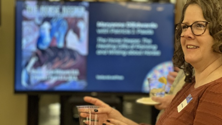 After Reihman welcomed attendees and congratulated faculty authors, recognizing their dedication to advancing knowledge and enriching the Lehigh community, speakers reflected on the libraries as both scholarly and social spaces—places where ideas develop, are shared, and nurtured. Nadav-Manes spoke of the year’s “gratitude and momentum,” describing how the libraries have deepened their mission to connect knowledge, people, and possibilities. He highlighted new efforts to expand open scholarship, modernize systems, support emerging technologies such as generative artificial intelligence, and create more inclusive, collaborative learning environments. He also emphasized the Libraries’ commitment to access, connection, and belonging.